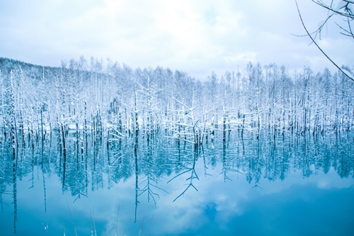 청의 호수는 다이세쓰산 국립공원의 활화산에서 훌러내리는 진흙으로 인한 피해를 막기 위해서 조성한 것이 의도치 않게 생겨난 명소라고 합니다. 물에 자연적인 수산화알루미늄 성분이 함유되 있어서 밝은 푸른 빛을 띤다고 합니다. 겨울의 청의 호수는 물이 얼어 그 위에 또 눈이 쌓여 눈의 호수가 되어 버립니다.