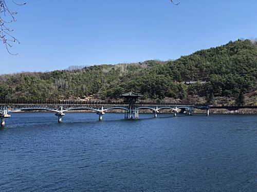 한 부부의 아름답고 숭고한 사랑이 간직되어 있는 나무다리입니다. 이 지역에 살았던 이응태부부의 아름답고 숭고한 사랑을 오래도록 기념하고자 했습니다. 먼저 간 남편을 위해 머리카락을 뽑아 한 켤레의 미투리를 지은 지어미의 애절하고 숭고한 사랑을 기념하고자 미투리 모양을 담아 다리를 지었다고 합니다. 2003년 개통되었으며 길이 387m, 너비 3.6m로 국내에서는 가장 긴 목책 인도교입니다. 다리 한가운데에는 월영정(月映亭)이 있습니다.