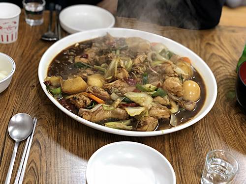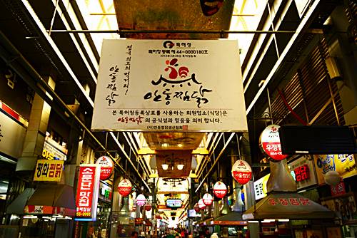 안동 구시장 한켠에 조성된 골목은 입구에서부터 닭모형이 눈에 띕니다. 서문으로 시작되는 이 골목은 전체가 찜닭골목입니다. 유명 버라이어티 1박 2일에서도 나와 더욱 유명해졌지요. 대부분 비슷한 맛을 내기때문에 어느곳에 들어가도 만족도는 높은 편입니다. 시장골목에 위치한 곳이라 좋은 서비스를 기대하긴 어렵지만 토속적인 분위기에 더욱 감칠맛 나는 찜닭을 즐길 수 있습니다.