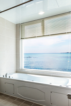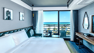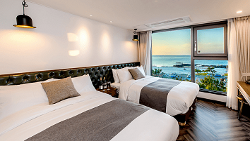 부티크 호텔의 장점인 인테리어가 유니크하고 특별한 호텔입니다. 욕실도 모던하게 꾸며져 있어 깔끔한 느낌이 드는 곳이네요. ^^ 욕조에서 오션뷰를 즐기며 반신욕도 즐길 수 있는 욕실 오션뷰 룸타입도 있으니 참고해주세요~! 근처에 걸어서 4분이면 흑돼지구이 맛집 난드르바당도 있습니다.