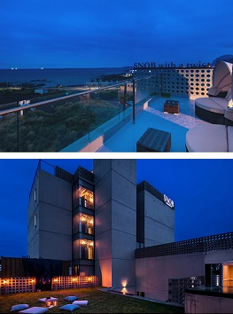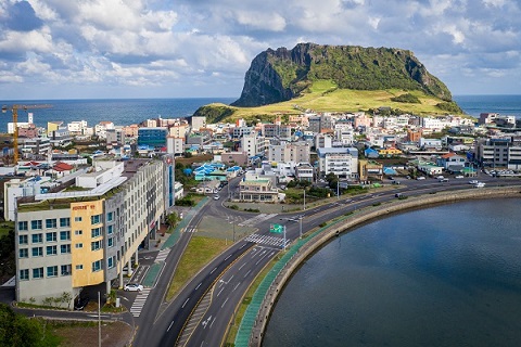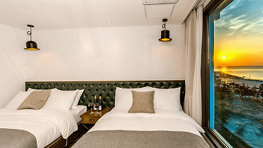 성산일출봉과 우도가 근접해 있고 루프탑에서 성산일출봉의 멋진 전망을 볼 수 있습니다. 동쪽으로 성산일출봉, 북쪽으로 우도, 서쪽으로 한라산의 전망을 가진 호텔입니다.