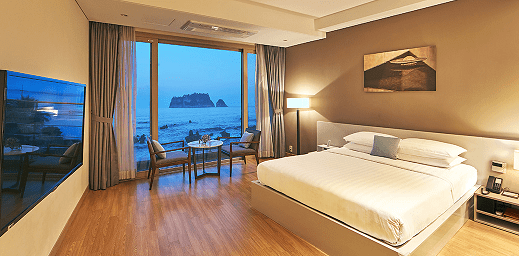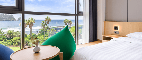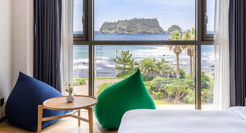 범섬과 제주 바다 전망을 누릴 수 있는 객실을 보유하고 있으며 유러피안 모던 스타일의 인테리어가 돋보입니다. 특히 객실에서 보이는 범섬이 멋있는데요. 더욱이 호텔 시설 안에 사우나도 있어 여독을 풀기에도 좋습니다. 신관이 리모델링 되었다고 하니 참고해주세요. ^^