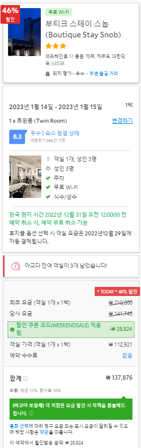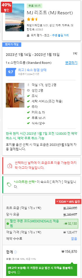 마음에 드는 숙소가 있으셨나요? 즐거운 제주 여행 다녀오시길 바랍니다. 감사합니다!