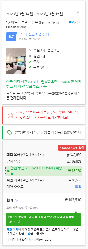 가격대 : 비수기 주말 13.7만원
