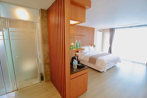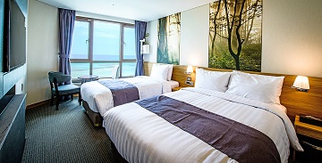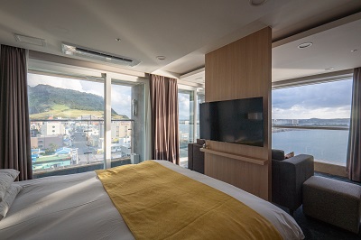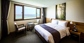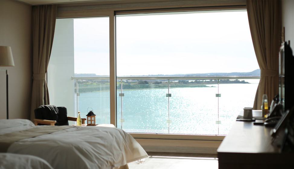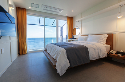 일출과 일몰이 아름다운 리조트라는 뜻의 썬앤문리조트는 전 객실이 오션뷰이며 넓은 유리창을 통해 바다전망을 보며 휴식을 취할 수 있습니다. 밝은 우드의 모던하고 세련된 인테리어가 아늑하고 따뜻하게 느껴지네요. ^^